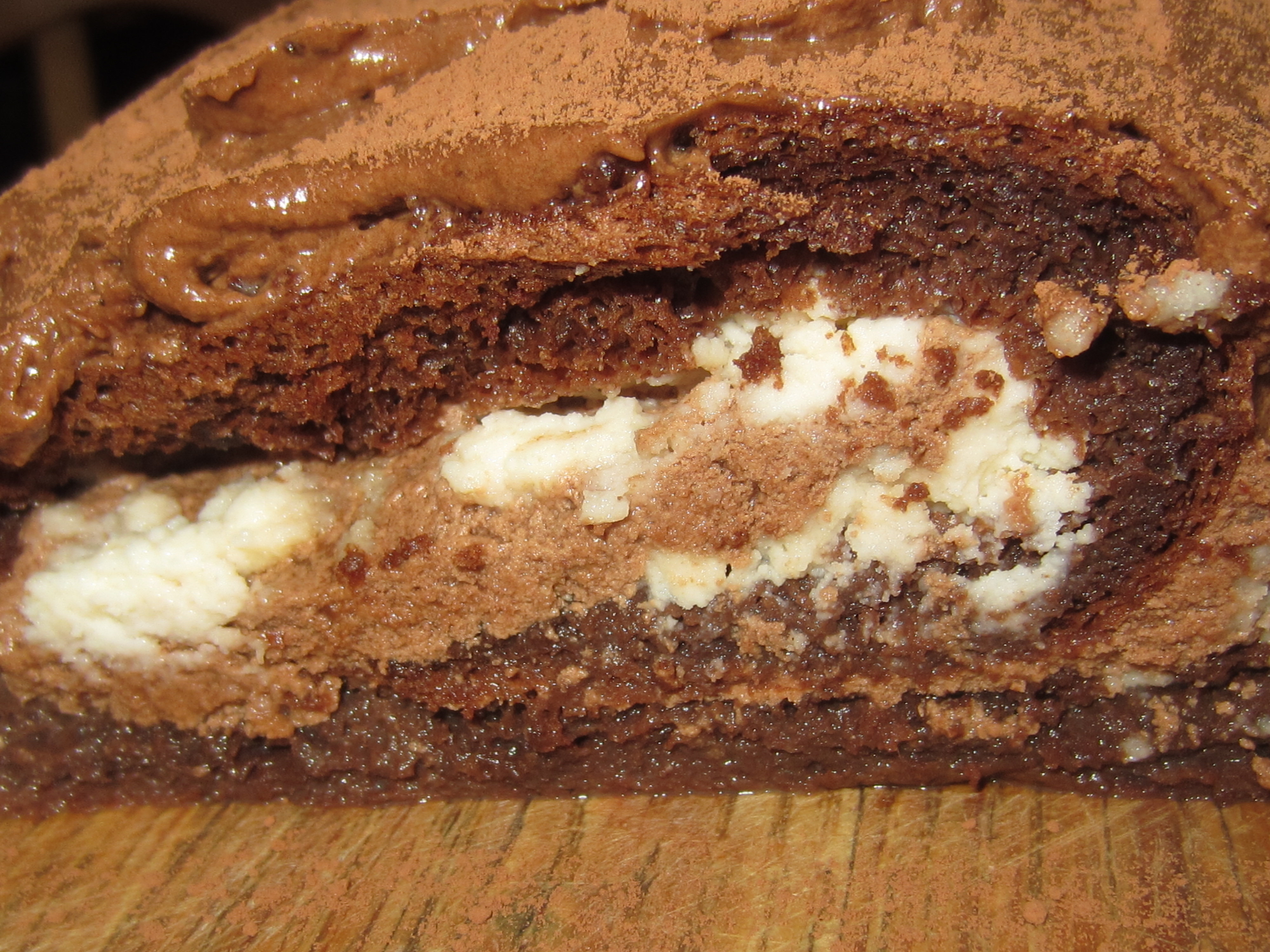 Roll it up, refrigerate and cover in some more mocha cream to hide imperfections.