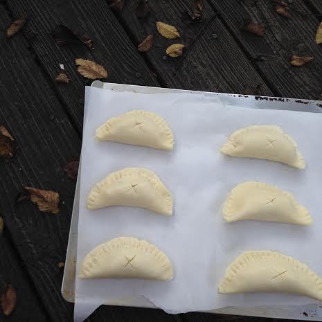 Preheat the oven to 350º fahrenheit and take the crust out of the fridge to be brought up to room temperature. Heat the oil in a skillet over medium heat and add the onion. Season with salt and pepper. Reduce the heat a tiny bit and cook, stirring occasionally, for 25 minutes (or until nicely browned). Add the garlic and cook for an additional minute. Transfer the onions to a large bowl and let cool for five minutes. Add the goat cheese and lemon zest, and mix until just combined. Roll out the pie dough and cut out three-inch rounds. Put a rounded tablespoon of the filling in the center of each round, and secure the dough around it in a half-moon shape (dab a few drops of water on the dough to help it stick). Seal/crimp the edges with a fork. Cut an X in the top of each one, and brush with egg wash. Make sure to cover the entire surface in egg wash, or the empanadas will end up having a few naked spots! Bake on a baking sheet lined with parchment paper for 15 minutes, or until golden.