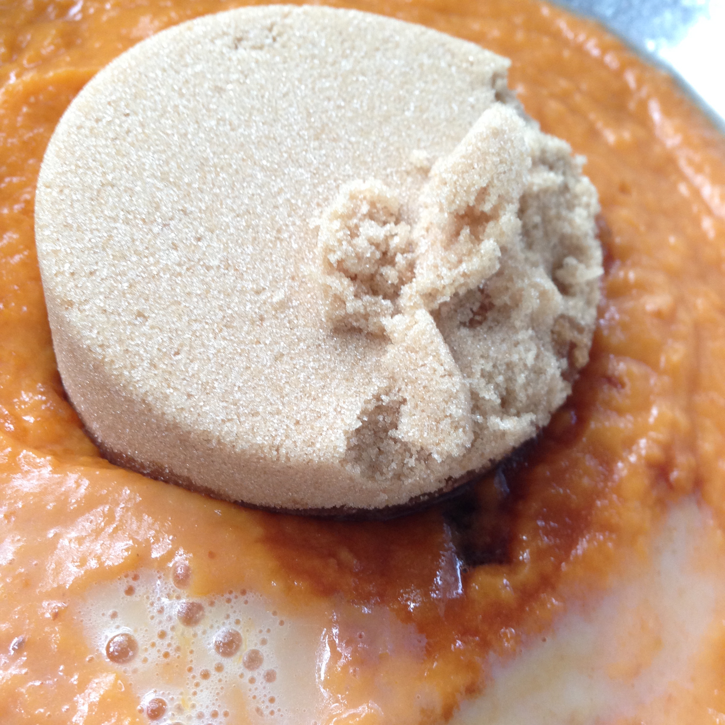 When the cake had been in the oven for an hour, I took it out to test its doneness with a toothpick. I made the daft mishap of sticking the toothpick into one of the outer edges of the cake, and not into the center. I was worried that it might go into the pumpkin layer and either disrupt the carefully arranged pumpkins or not provide accurate results for how well the pound cake was baked. Next time, I will not make this mistake!!!