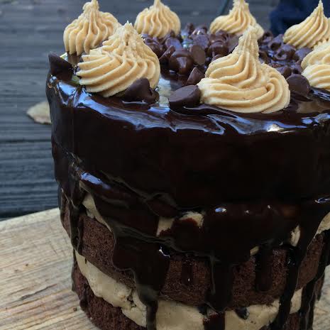 Obviously, there are countless food blogs with countless combinations of fare. Those are just the ones I come across most often. ANYWAY my point is that this is the quintessential cake of the third type listed. It has brownies, it has cookie dough, it has buttercream, it has ganache, it’s eye-catching and it’s loaded with peanut butter. What I want to know is.. who actually MAKES this cake? We see it on social media, but when you go to its original source, all the comments just say “Looks incredible” etc., no one has actually made it and given feedback. Most people don’t ask for this cake for their birthday. Red velvet, yes. German chocolate, yes. Layers of brownie and eggless peanut butter cookie dough topped with a rich ganache and rosettes of peanut butter frosting? Not so much.