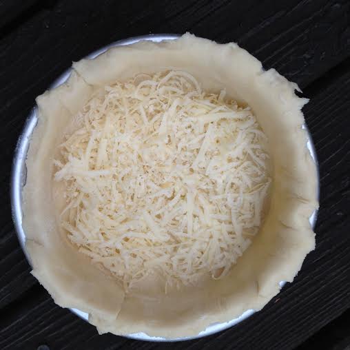 I pressed the dough into a 6-inch cake pan in lieu of a pie tin, because I was only making it for three people. Honestly, it’s probably the same amount of crust and filling, but the smaller diameter makes the pie feel more acceptable to eat in one sitting.