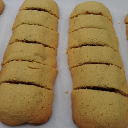 As soon as you have removed the cookies from the oven, use a sharp knife to trim each bar into 6 1” long cookies. While the cookies are still warm, transfer them to a plastic container with a lid or large zip-top bag.