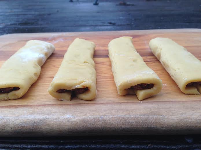 For the filling, combine the figs, applesauce, honey and cinnamon in the bowl of a food processor. Pulse until smooth. Scrape the bowl down with a rubber spatula and pulse again to ensure no chunks remain; if any sneak by, they will clog the pastry tip during piping, much to your annoyance. Transfer the fig paste to a pastry bag fitted with a plain round tip.