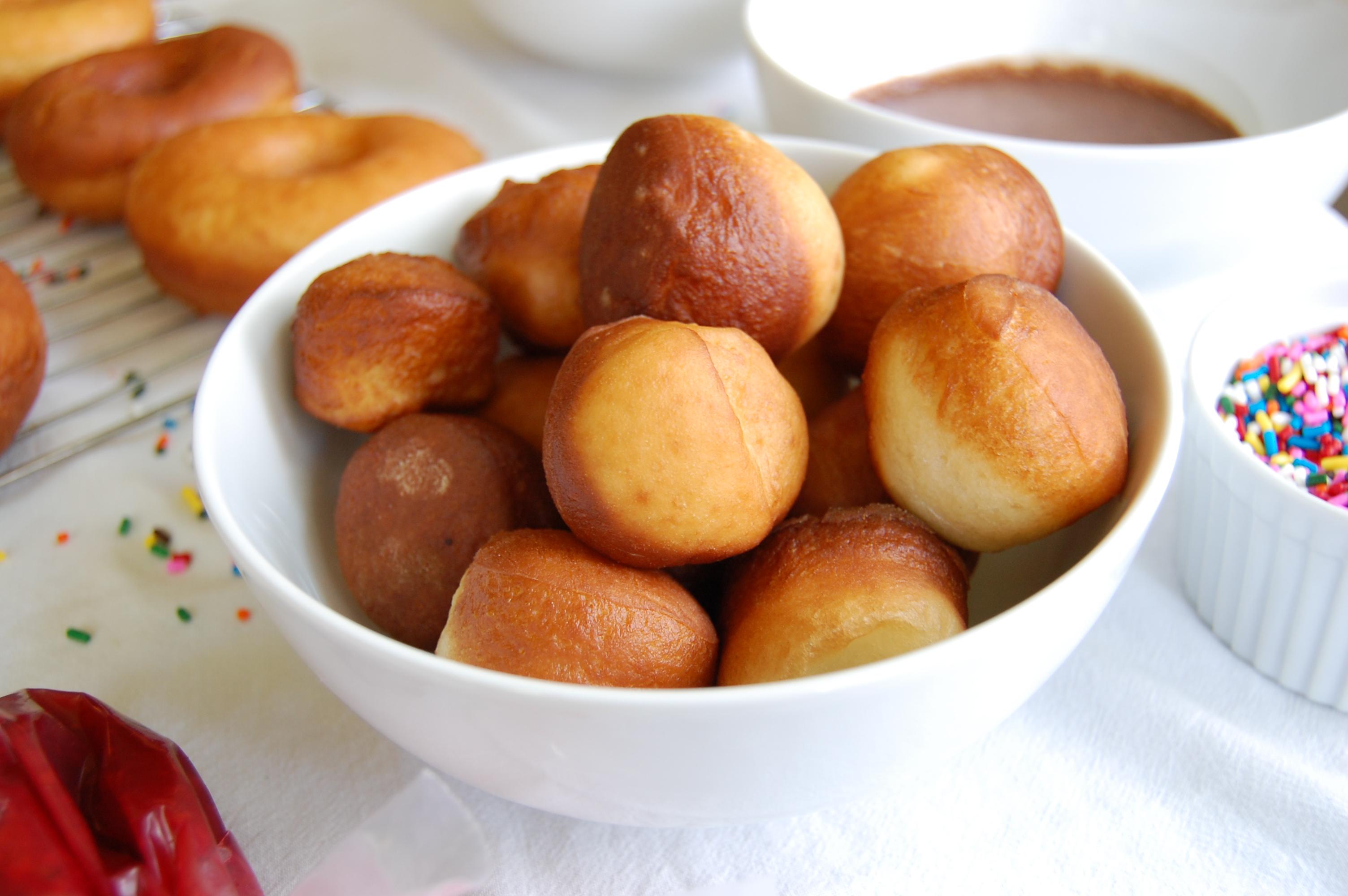 - save the extra dough scraps and make doughnut holes (i dusted mine with superfine sugar)!