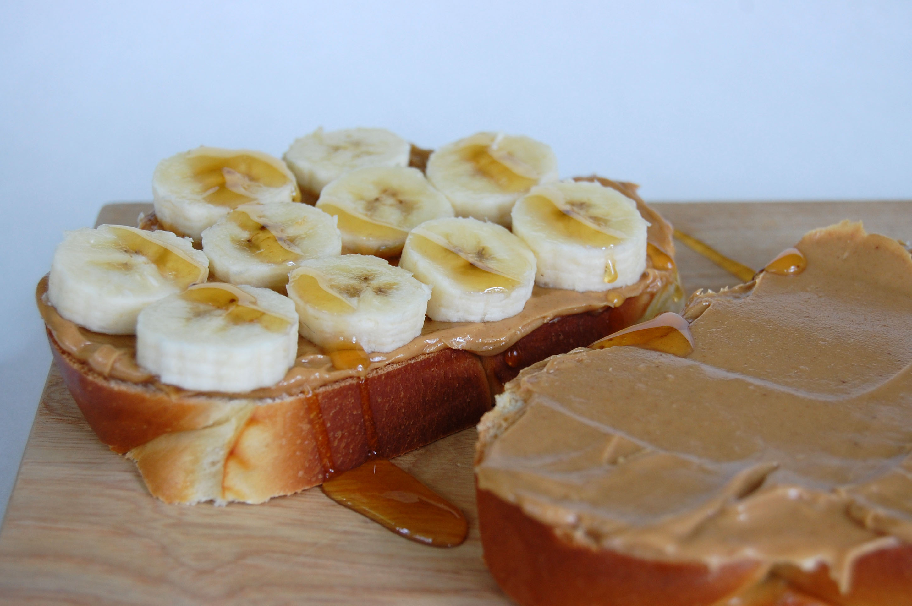 4 thick slices of challah or other bread- 1/4 cup peanut butter, approximately